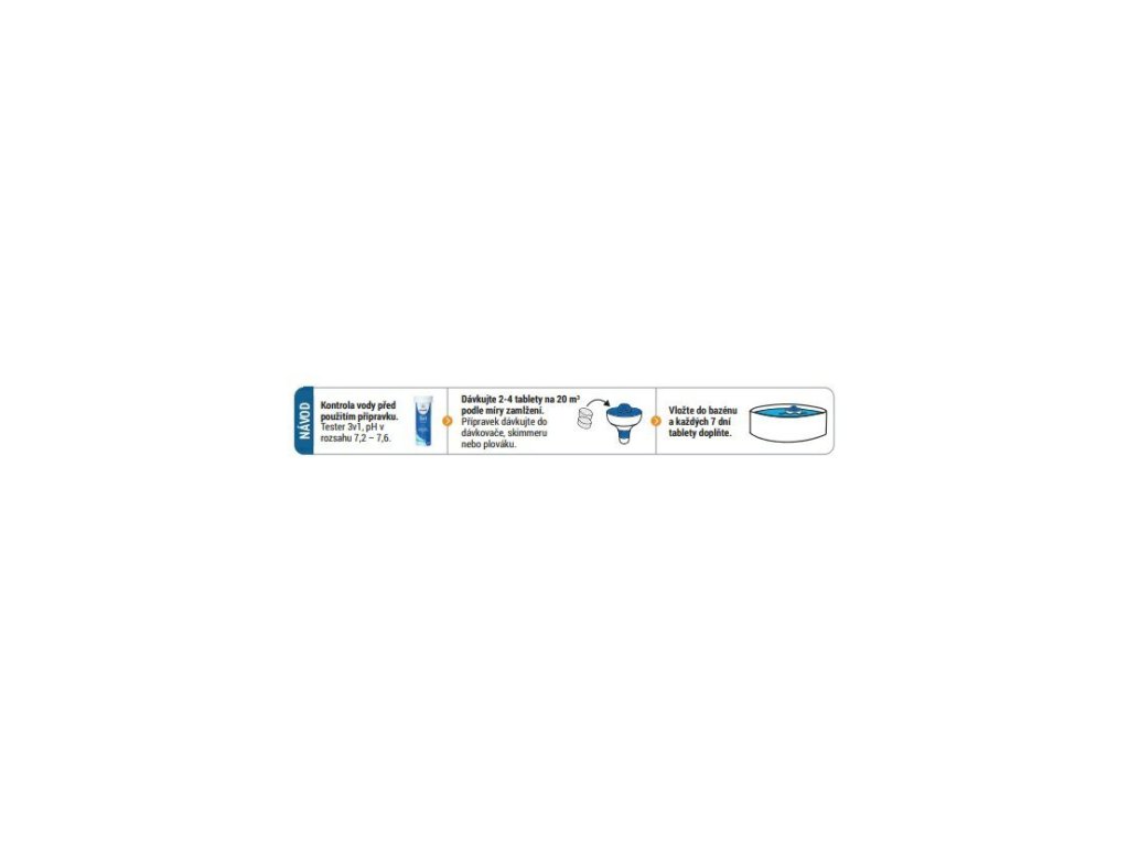 Dávkování: Podle míry zamlžení vody dávkujte 2–4 tablety na 20 m3 každých 7 dní .
